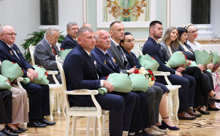 «Своими достижениями вы сделали этот праздничный день во Дворце Независимости особенным. Спасибо за труд! Спасибо всем, кто на пути к успеху стал для вас надежной опорой, — родным, близким, друзьям, коллегам, вашим сослуживцам. Личная награда — это всегда результат командной работы. Так же за каждым достижением страны, историческим и современным, всегда стоял и будет стоять весь наш народ«, – сказал Александр Лукашенко.
