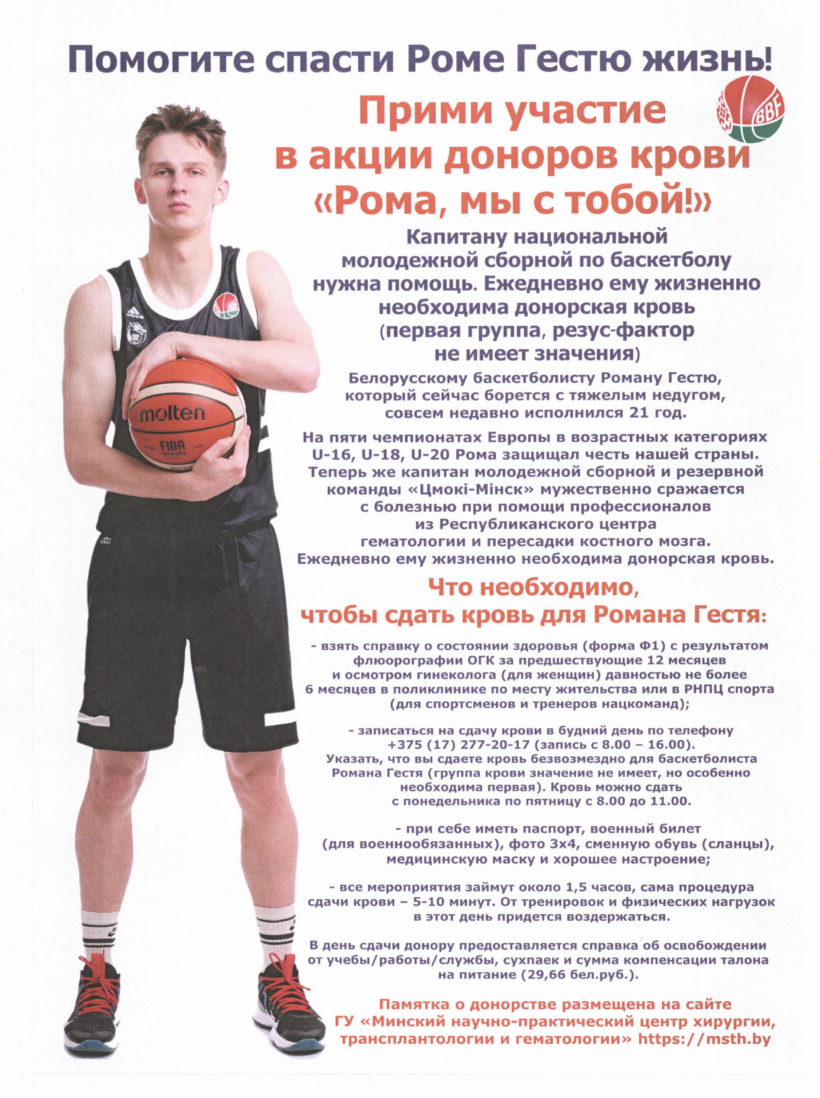 Прими участие в акции доноров крови «Рома, мы с тобой!»