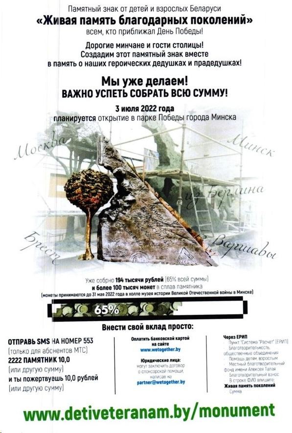 Продолжается сбор средств на памятный знак «Живая память благодарных поколений» в честь погибших в годы Великой Отечественной войны