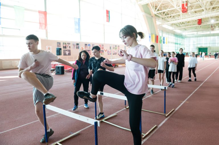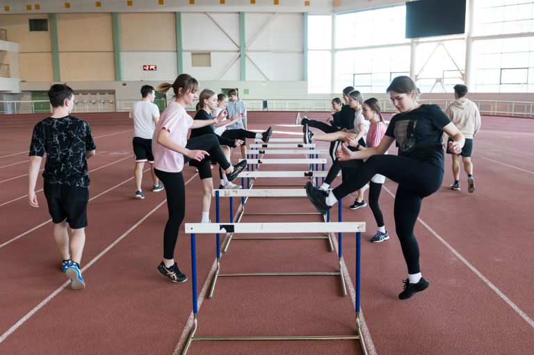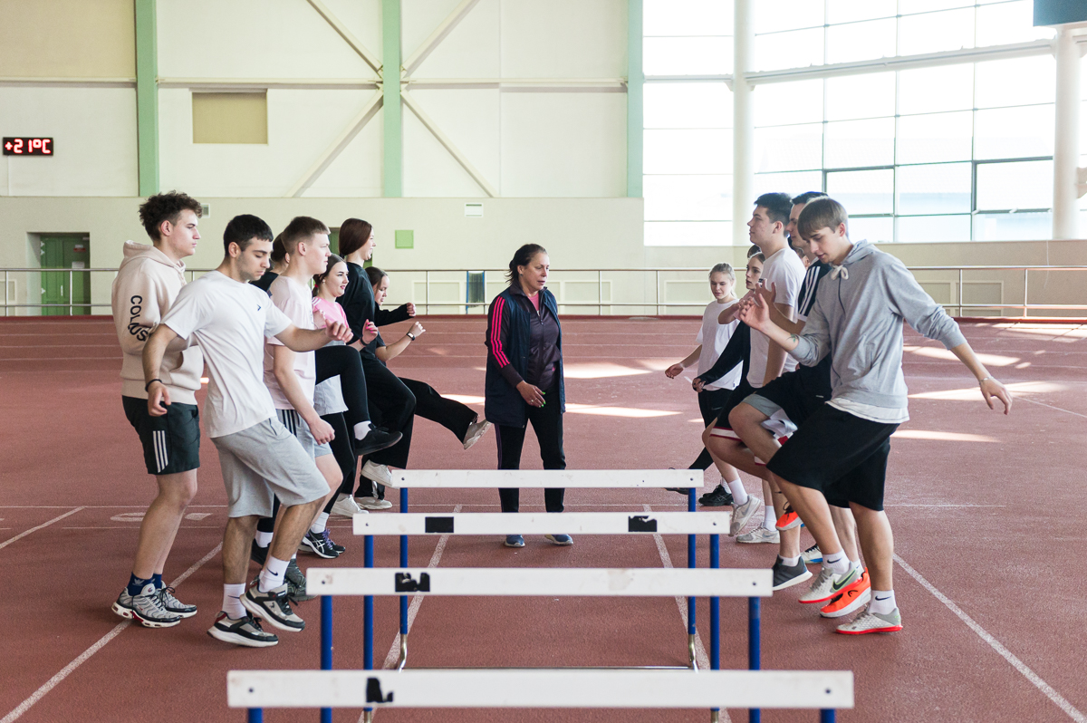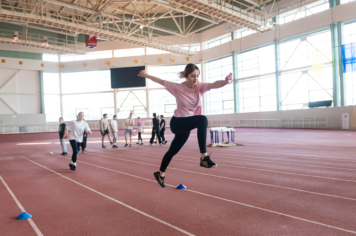 Сегодня, в третий день проекта, будущие абитуриенты вместе со студентами университета посетили лекционные и практические занятия. В легкоатлетическом манеже прошли занятия по легкой атлетике, где участники проекта вместе со студентами 015 группы обучались техникам барьерного бега и прыжкам в длину с разбега. Ребята активно принимали участие во всех подготовительных упражнениях и пытались преодолеть дистанции под одобрительную поддержку студентов и преподавателя.