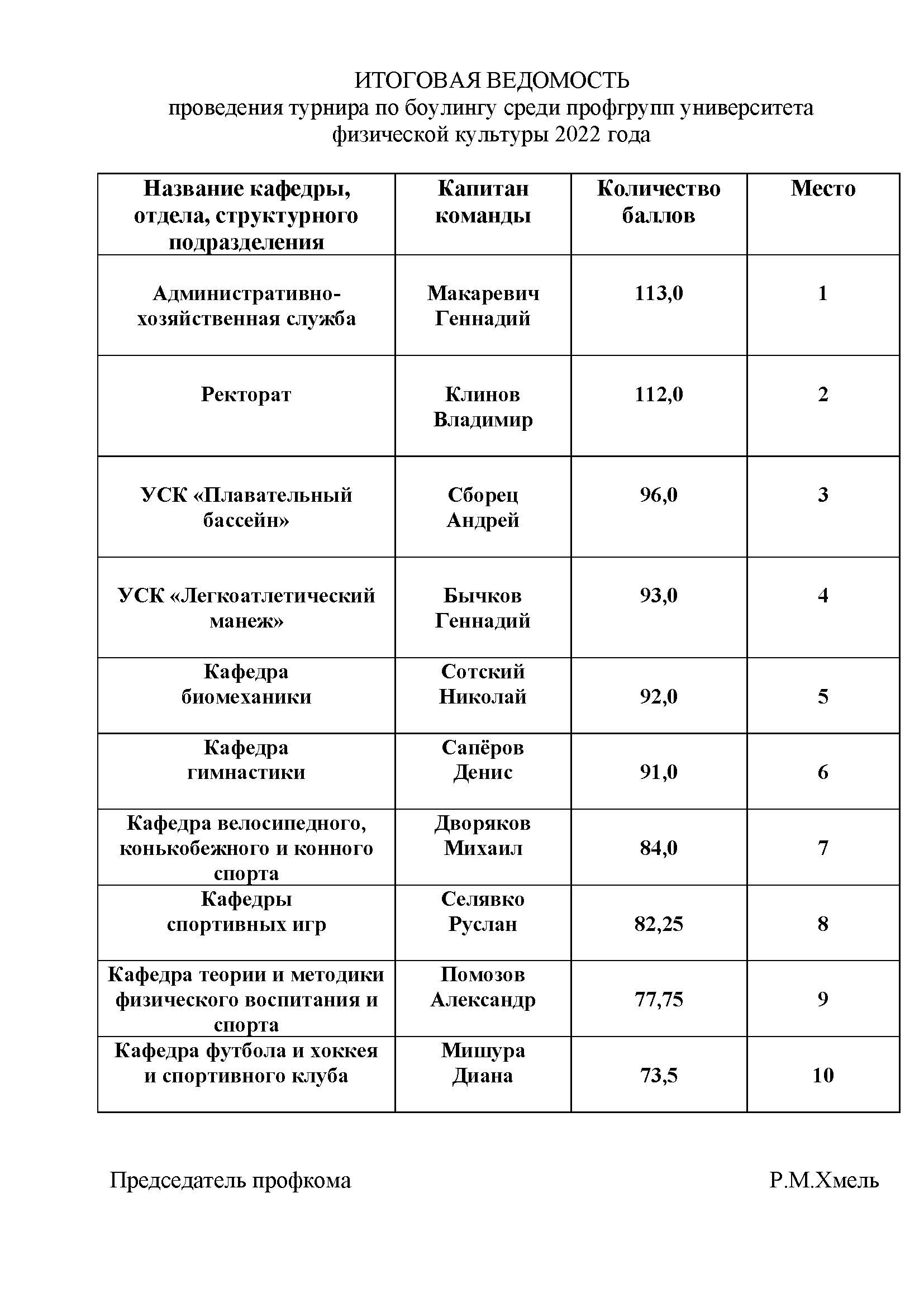 25 марта 2022 года в боулинг-клубе Madison состоялся традиционный 12-й турнир по боулингу среди профгрупп университета.