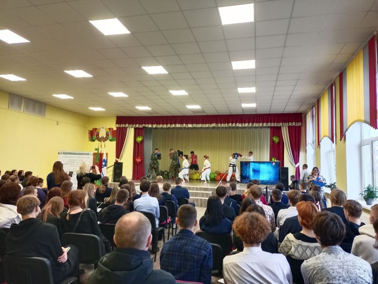 Студенты университета подготовили концертную программу с выступлением команды по аэробике спортивной, танцевальной пары, показательными выступлениями по каратэ, рукопашному бою, таэквондо, а также порадовали участников мероприятия вокальными номерами. Учащиеся г. Орша гостеприимно встретил команду БГУФК и наградили выступление студентов бурными аплодисментами.