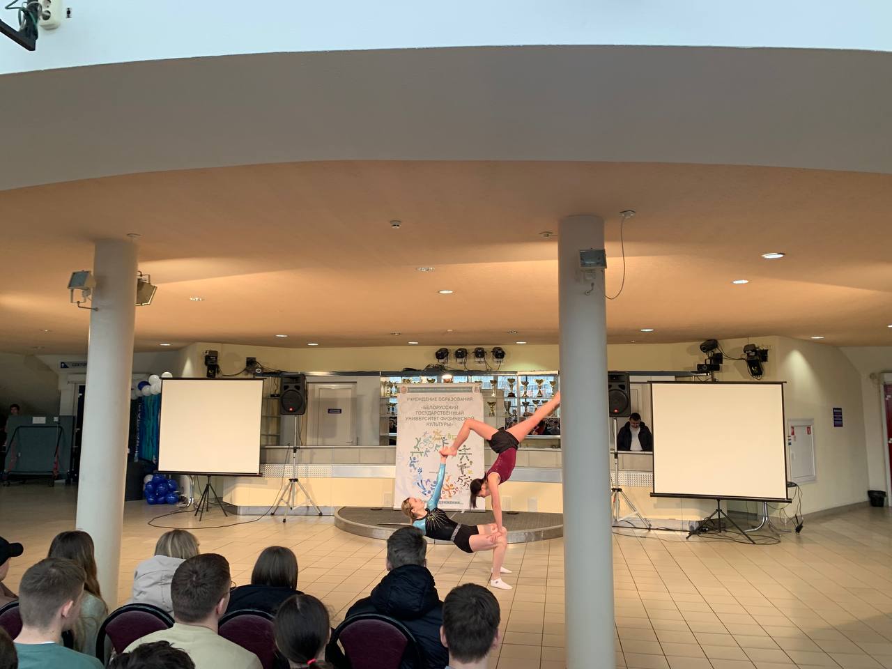 Профориентационная команда университета подготовила концертную программу с показательными выступлениями студентов спортивно-педагогических факультетов массовых видов спорта и спортивных игр и единоборств по танцевальному спорту, спортивной акробатике, каратэ, таэквондо, тайскому боксу, фехтованию, боксу, тяжелой атлетике. Гостей мероприятия также порадовали и удивили вокально-хореографические композиции с участием студентов факультетов спортивных игр и единоборств, оздоровительной физической культуры, менеджмента спорта, туризма и гостеприимства.