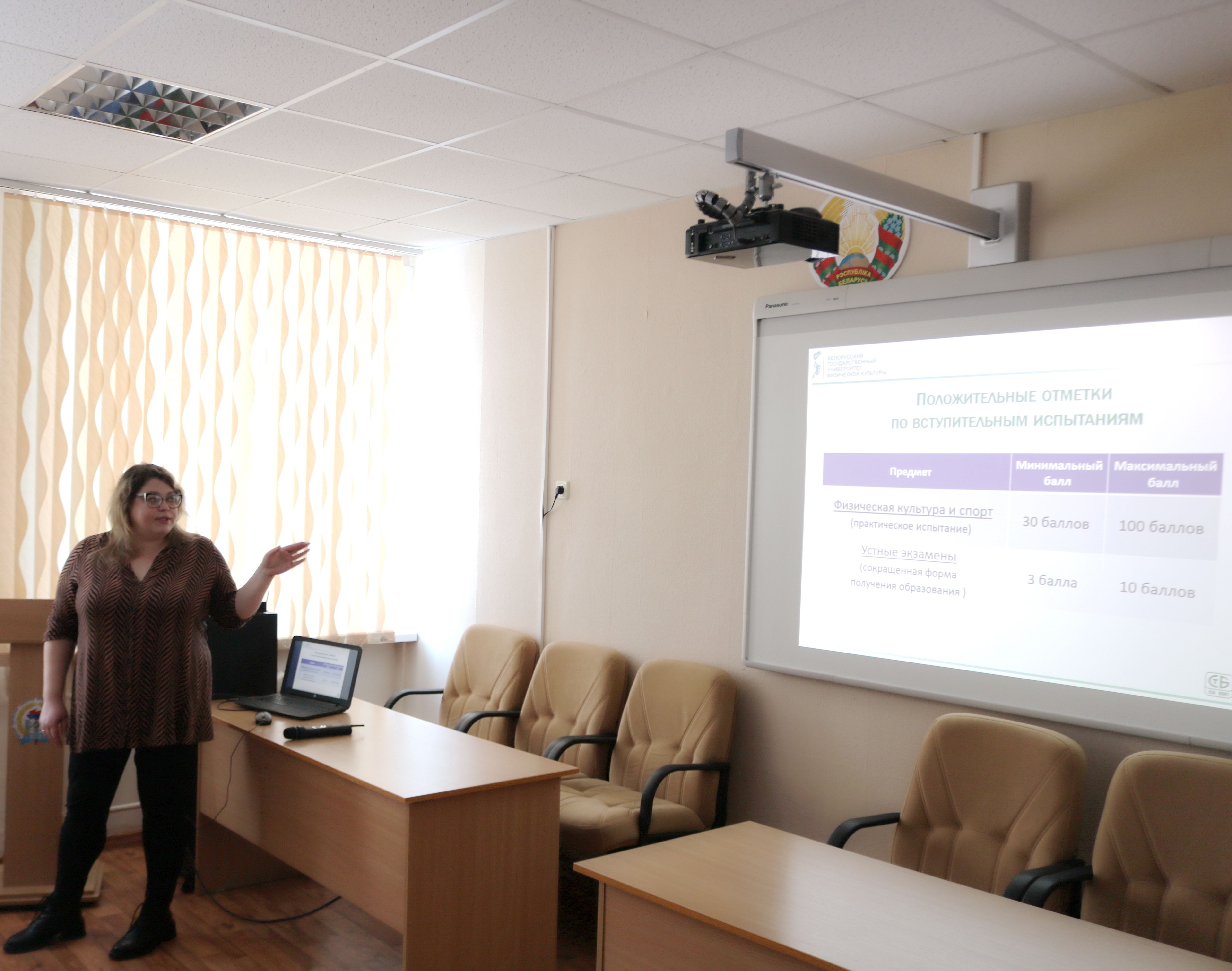 9 февраля представители университета встретились с выпускниками учреждения образования «Минское государственное городское училище олимпийского резерва». Цель проведения профориентационной работы с потенциальными абитуриентами — информирование об особенностях поступления в университет на полный и сокращенный срок обучения в рамках интегрированной подготовки, а также об условиях обучения в университете.
