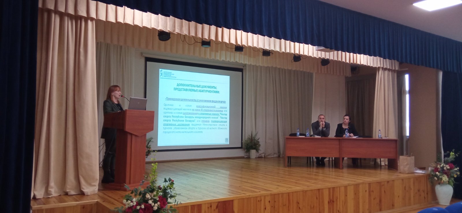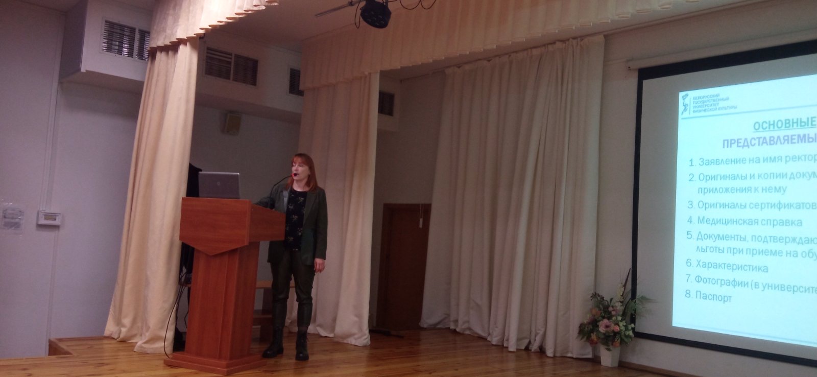 На встрече с учащимися члены приёмной комиссии рассказали про особенности интегрированной подготовки и поступления на базе среднего специального образования, про льготы при зачислении для учащихся-спортсменов, а также о преимуществах обучения в БГУФК.