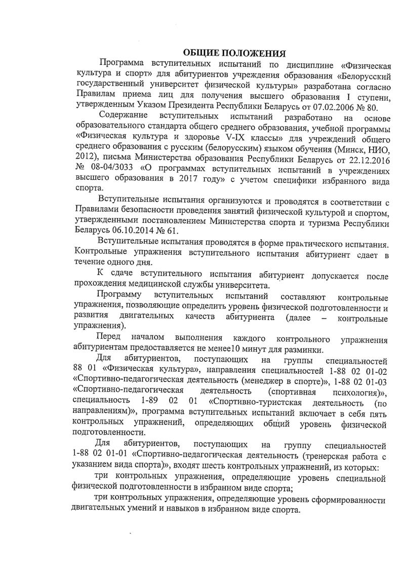 Программа вступительных испытаний