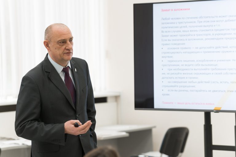 Проректор по безопасности, режиму и кадрам Александр Анатольевич Садик провел встречу со студентами на тему профилактики деструктивного поведения