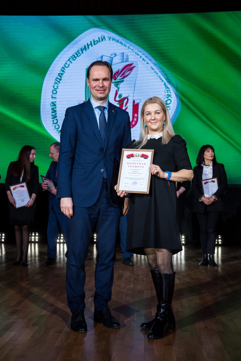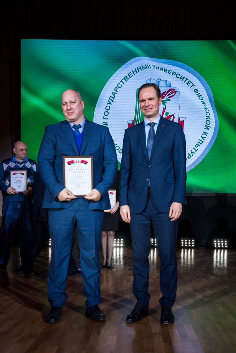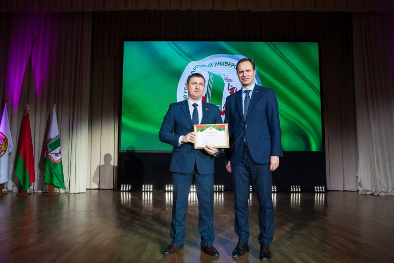 За образцовое выполнение должностных обязанностей и качественное обеспечение образовательного процесса преподавателям и сотрудникам университета были вручены нагрудные знаки, Благодарности и Грамоты университета, Министерств и ведомств. По итогам участия во Всебелорусской неделе сдачи Государственного физкультурно-оздоровительного комплекса Республики Беларусь значки «Фiзкультурнiк Беларуси» получили 12 преподавателей и сотрудников.