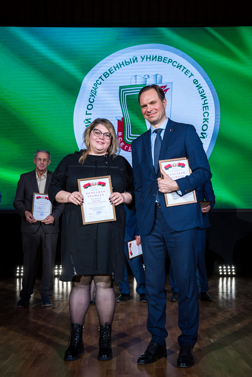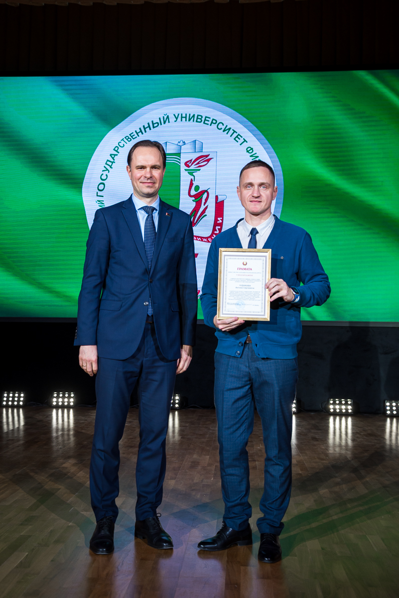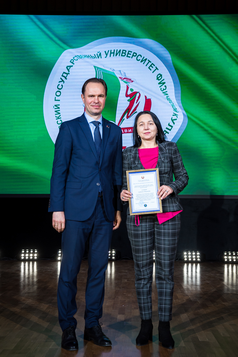 За образцовое выполнение должностных обязанностей и качественное обеспечение образовательного процесса преподавателям и сотрудникам университета были вручены нагрудные знаки, Благодарности и Грамоты университета, Министерств и ведомств. По итогам участия во Всебелорусской неделе сдачи Государственного физкультурно-оздоровительного комплекса Республики Беларусь значки «Фiзкультурнiк Беларуси» получили 12 преподавателей и сотрудников.