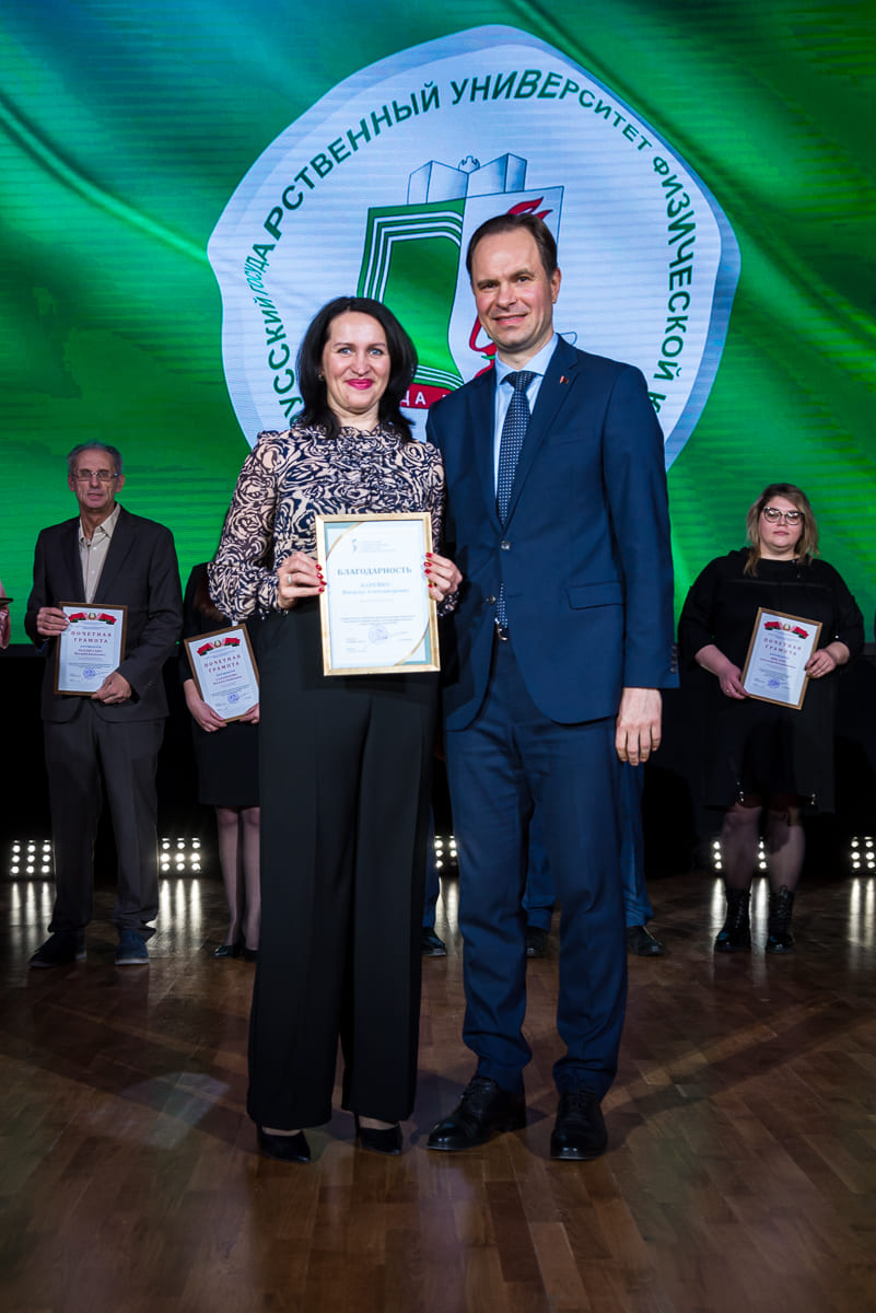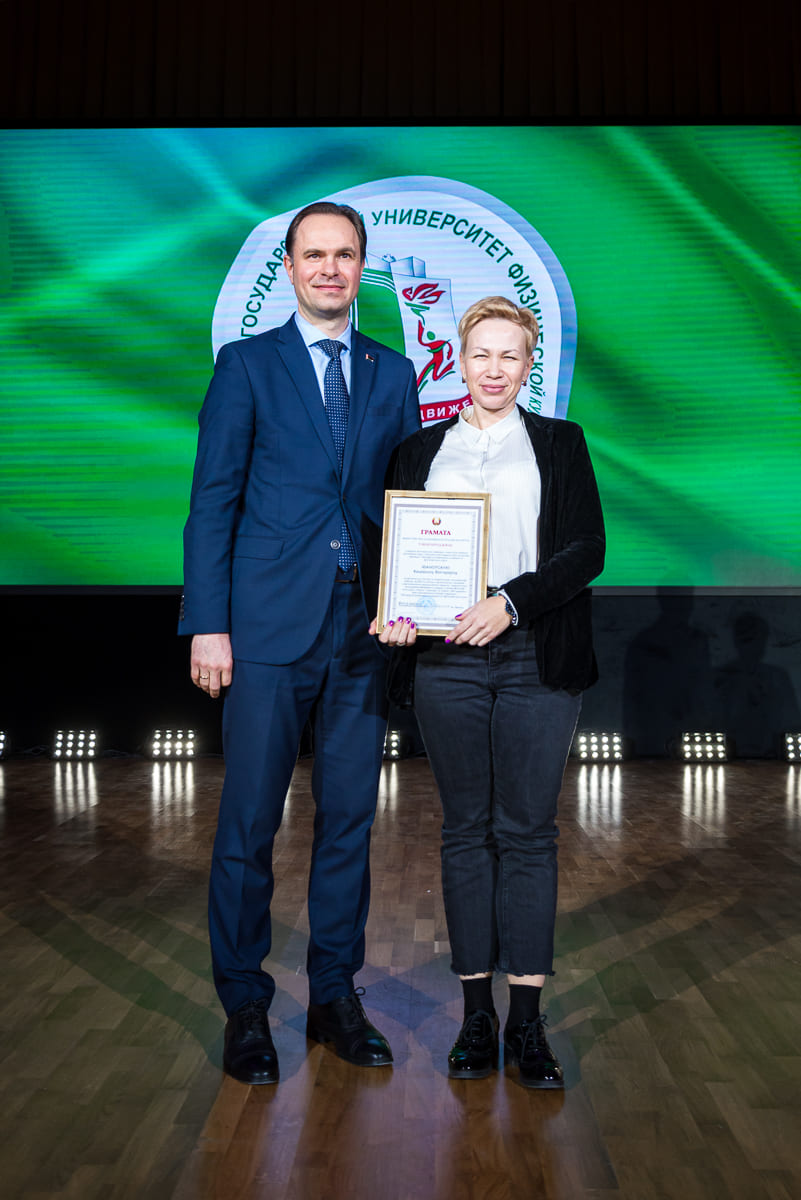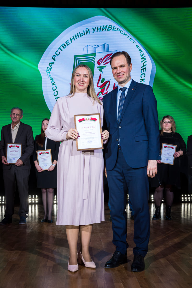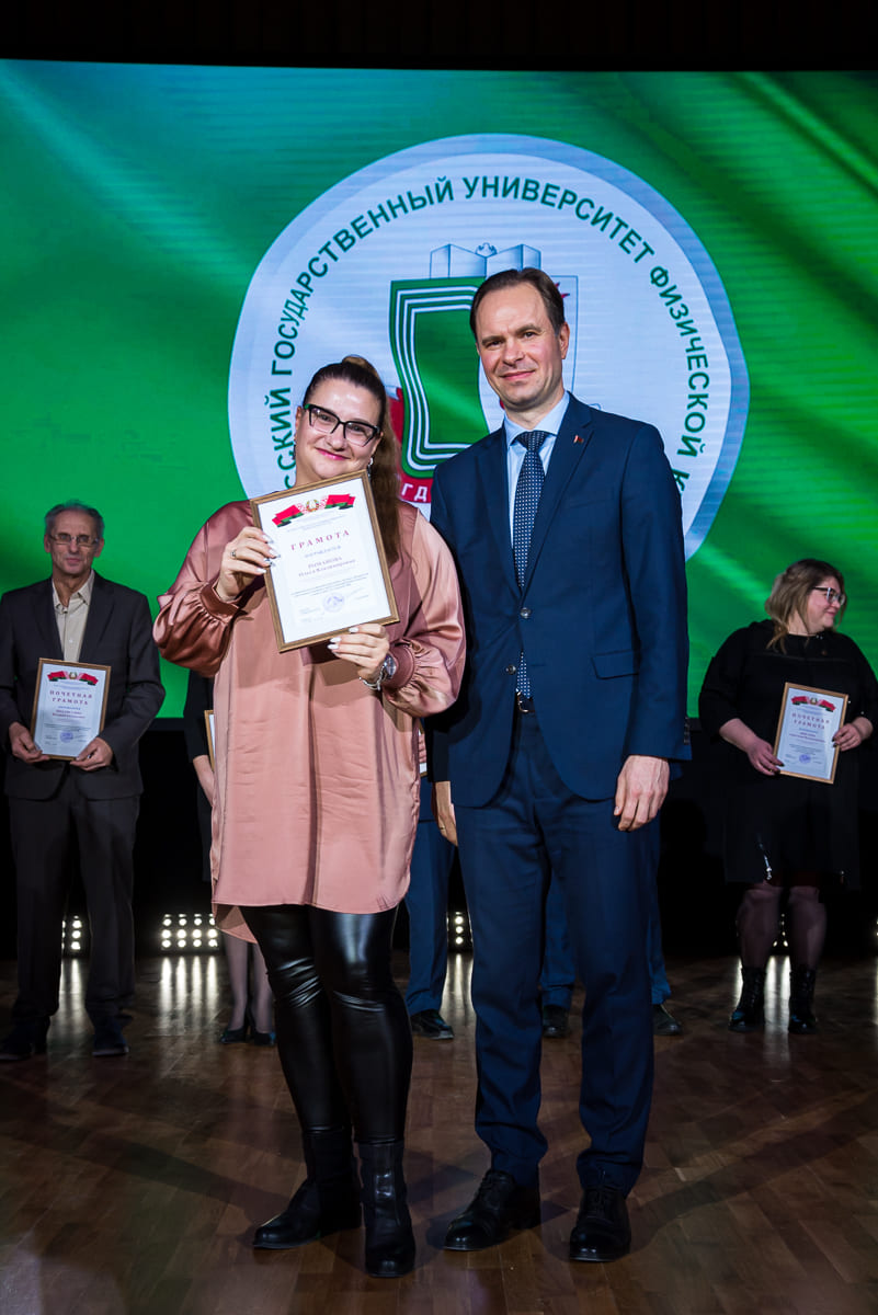 За образцовое выполнение должностных обязанностей и качественное обеспечение образовательного процесса преподавателям и сотрудникам университета были вручены нагрудные знаки, Благодарности и Грамоты университета, Министерств и ведомств. По итогам участия во Всебелорусской неделе сдачи Государственного физкультурно-оздоровительного комплекса Республики Беларусь значки «Фiзкультурнiк Беларуси» получили 12 преподавателей и сотрудников.