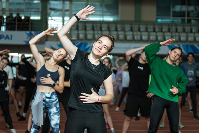 Благодарим спортивный клуб за организацию фитнес-марафона, а преподавателей и студентов кафедры за интересно смоделированную программу и классную атмосферу, которая царила на протяжении часа в легкоатлетическом манеже.