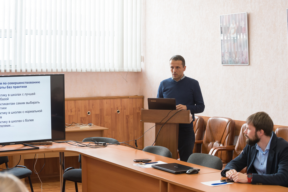 Начальник учебно-методического отдела А.А. Стефаненко ознакомила с особенностями организации педагогической практики студентов с учетом изменения ее продолжительности и сроков проведения в соответствии с новыми учебными планами. По проблеме организации производственной педагогической практики студентов, находящихся на индивидуальном графике обучения, выступила руководитель практики от университета Т.Е.Смирнова. В дискуссии по содержанию программы педагогической практики приняли активное участие деканы, заместители деканов, заведующие кафедрами, ответственные за учебно-методическую работу кафедр, руководители производственной педагогической практики от факультетов.