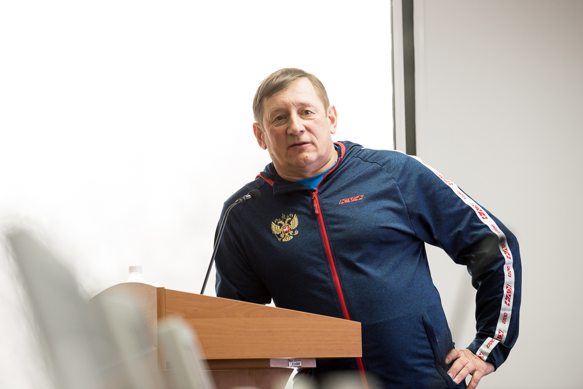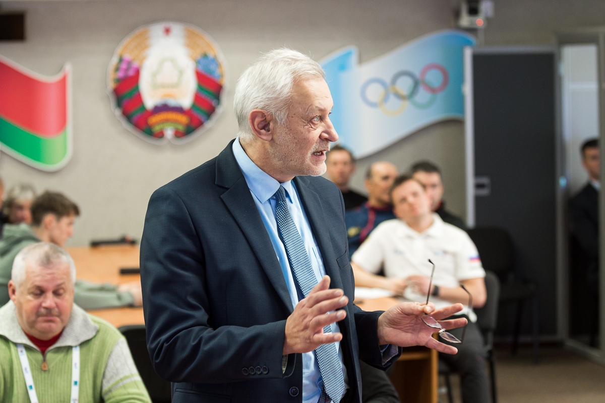 Также, отвечая на вопросы белорусских коллег, поделился своим опытом руководитель Комплексной научной группы по биатлону со сборными командами России, Омской и Тюменской областей, кандидат педагогических наук, профессор Загурский Николай Степанович.