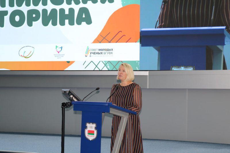 С приветственным словом к участникам обратились организаторы Форума: проректор по научной работе БГУФК, кандидат педагогических наук Татьяна Анатольевна Морозевич-Шилюк, Председатель Белорусской олимпийской академии Наталья Валерьевна Апончук и начальник Республиканского молодежного центра Виктория Олеговна Захаревская.