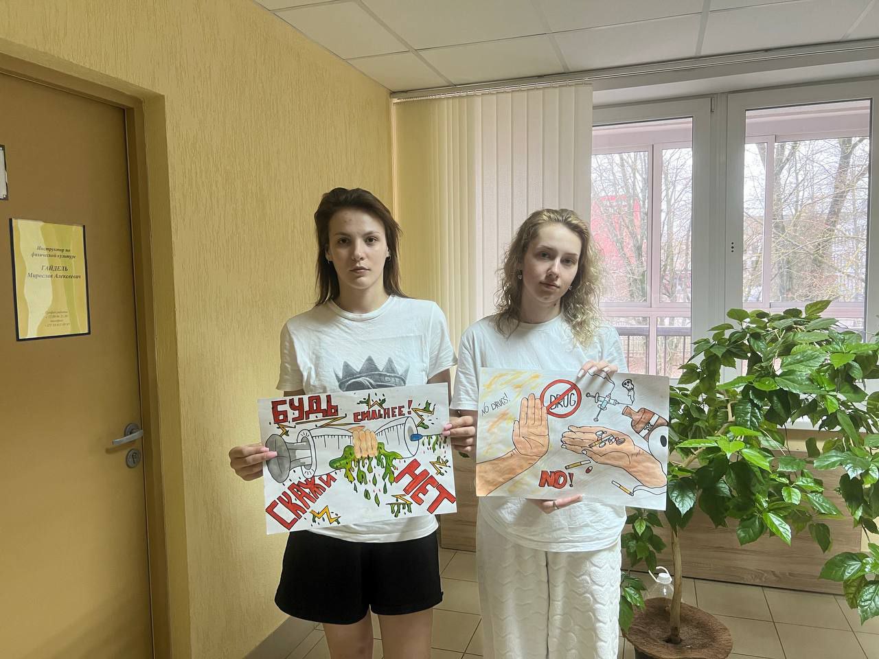 Студенты рисовали плакаты, голосуя тем самым за здоровый образ жизни и жизнь без наркотиков.