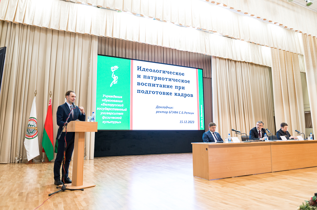 15 декабря на базе БГУФК прошло заседание коллегии Министерства спорта и туризма Республики Беларусь «Идеологическое и патриотическое воспитание молодежи в организациях физической культуры и спорта».