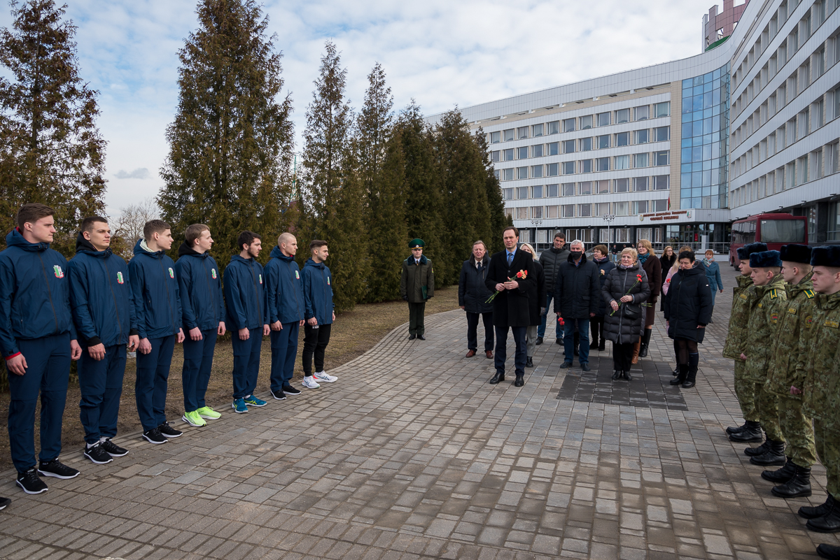 — Прошлое — это настоящие уроки мужества для всех нас, о котором мы должны помнить. И очень символично, что в День защитников Отечества и Вооруженных Сил Республики Беларусь мы пришли почтить память героев защищавших нашу страну и погибших в годы войны, — обратился к участникам мероприятия ректор университета Репкин Сергей Борисович.