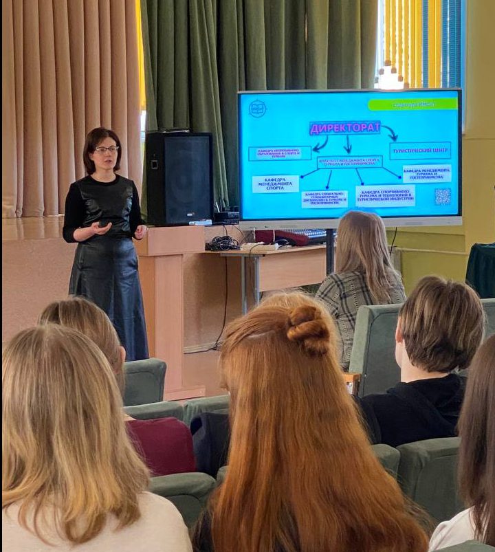 В рамках профориентационной работы проводились встречи с учащимися 9, 10, 11 классов, что позволило охватить более 1 000 учеников. Учащимся был продемонстрирован промо-ролик об университете, компьютерная презентация об Институте менеджмента спорта и туризма и розданы буклеты. В ходе встреч учащиеся задавали вопросы о проходных баллах, особенностях специальностей, возможностях будущего трудоустройства.