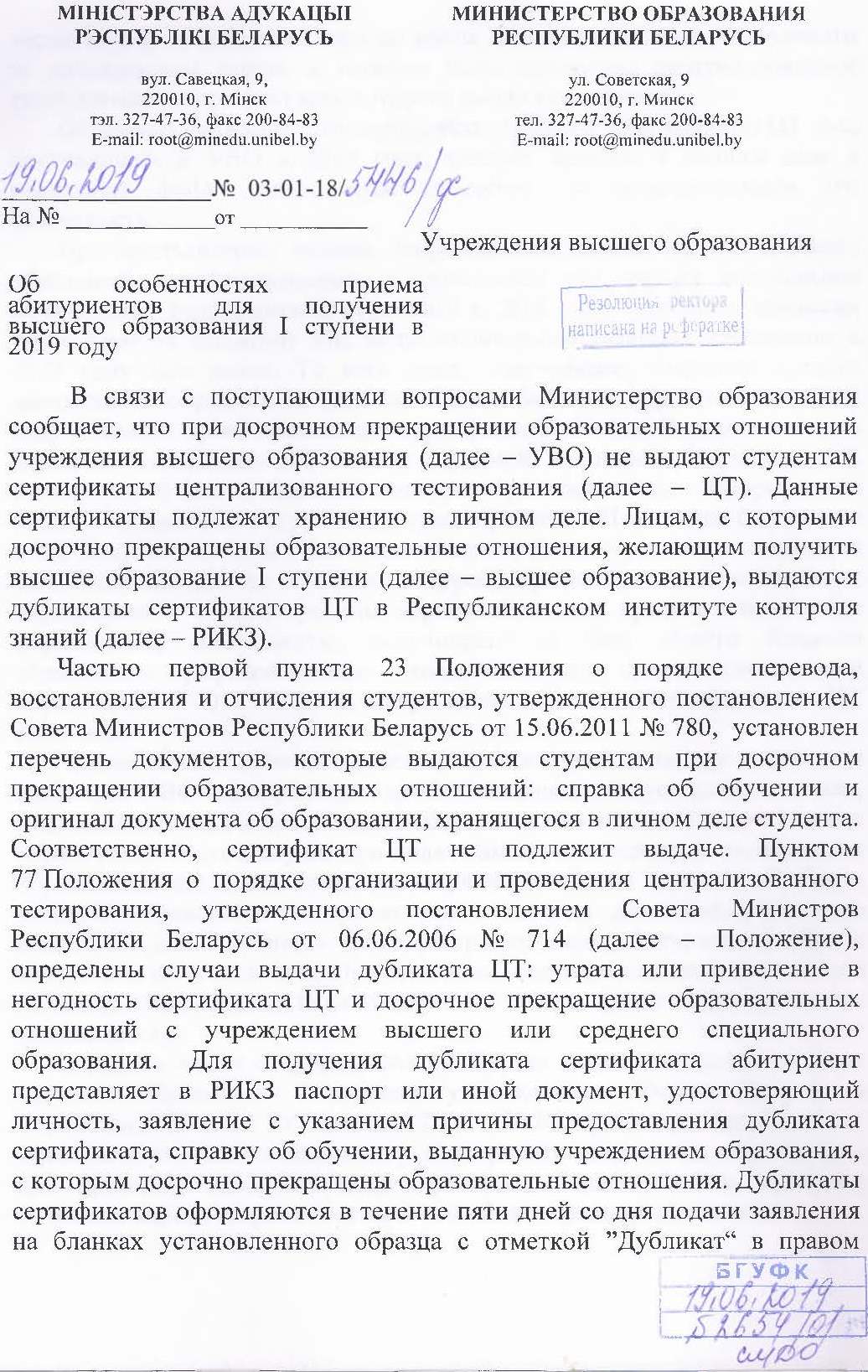 Разъяснение норм законодательства по особенностям приема
