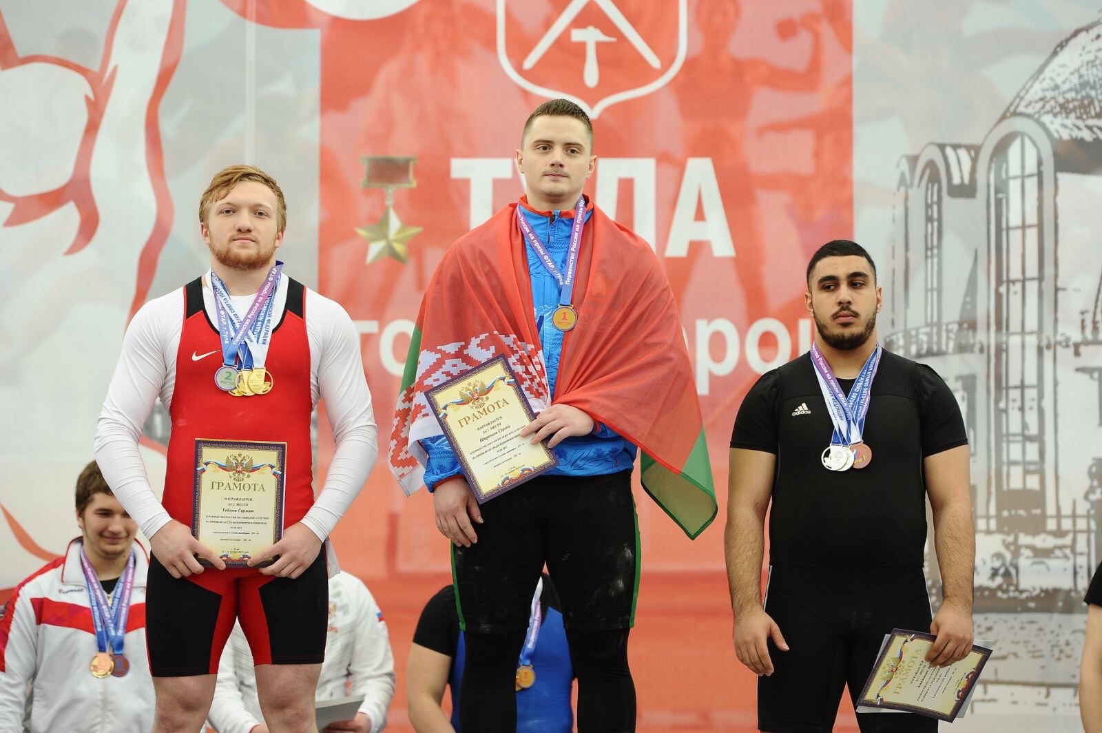 (174 кг., 203 кг., 377 кг.) в весовой категории до 102 кг в возрастной группе 19-20 лет.
