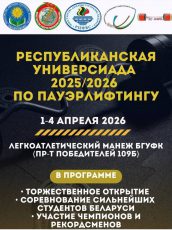 - С 1 по 4 апреля на базе БГУФК пройдет Республиканская универсиада-2025/2026 по пауэрлифтингу