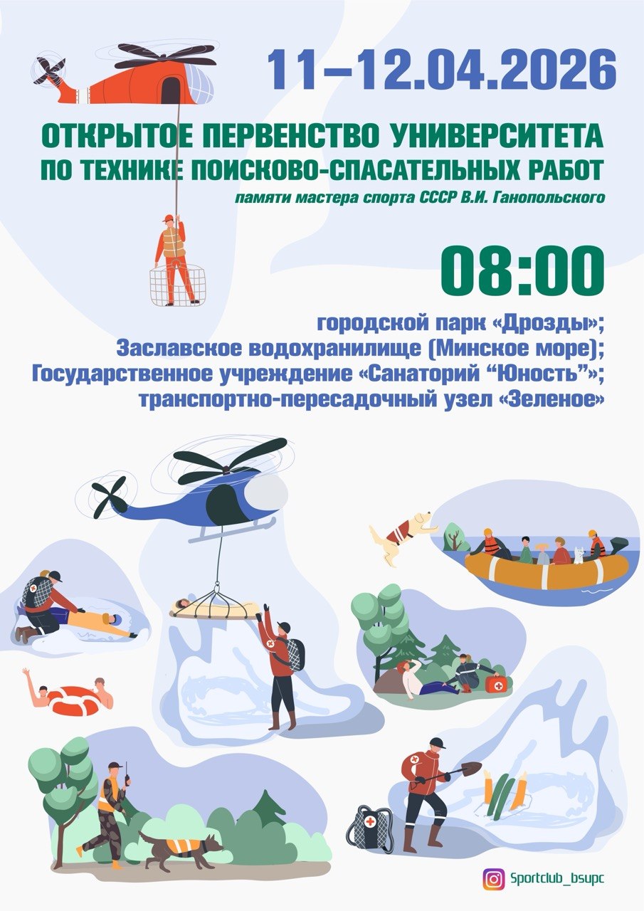 - С 11 по 12 апреля пройдет открытое первенство университета по технике поисково-спасательных работ памяти мастера спорта СССР В.И.Ганопольского