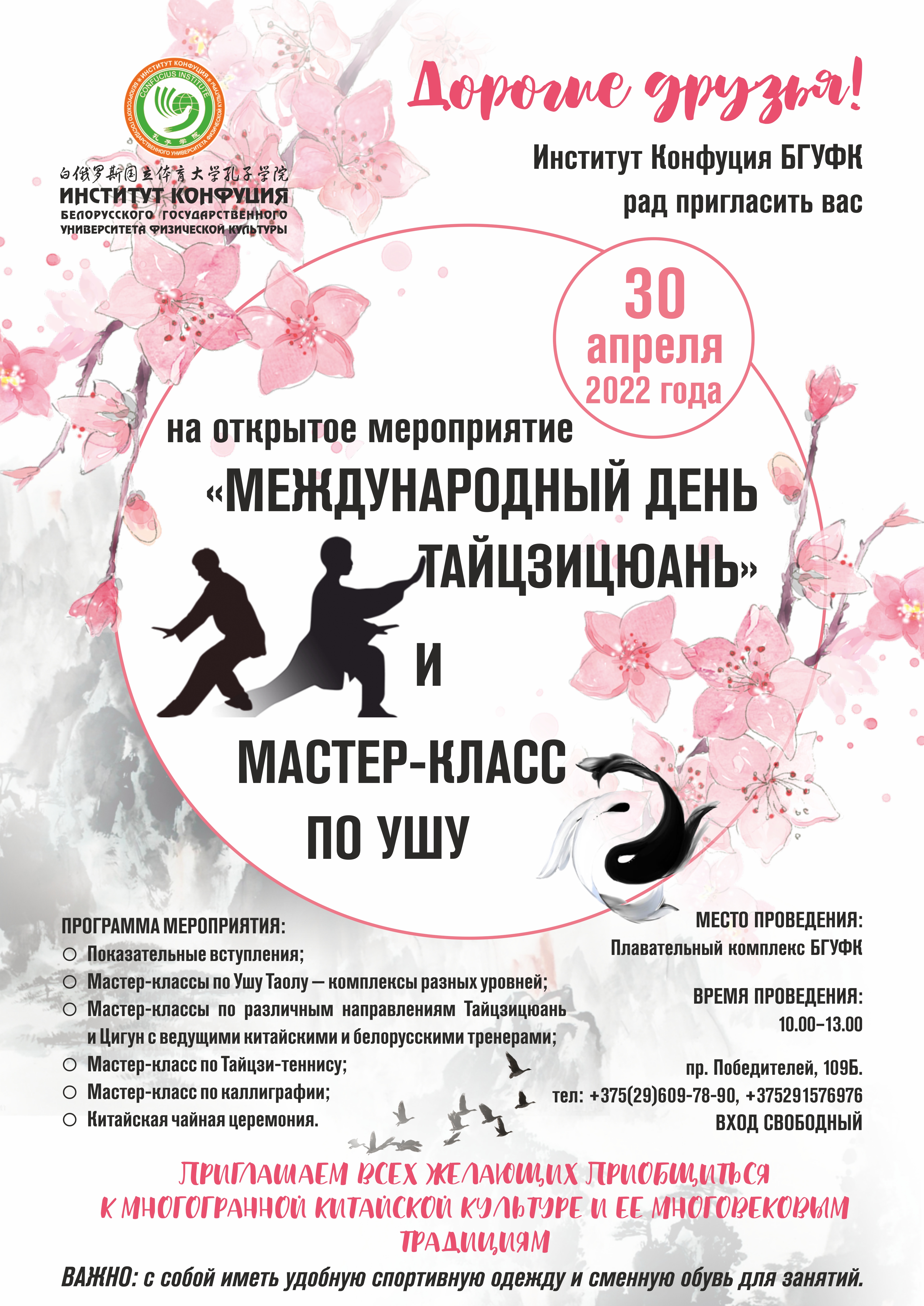 Подведение итогов конкурса и торжественное награждение победителей с вручением памятных подарков состоится 30 апреля на праздничном мероприятии Института Конфуция БГУФК, посвященном Международному дню тайцзи.
