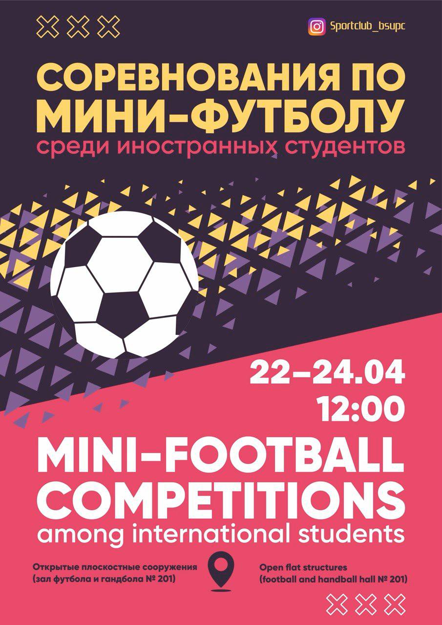 - С 22 по 24 апреля пройдут соревнования по мини-футболу среди иностранных студентов