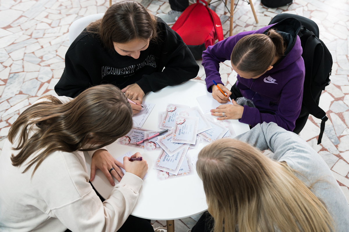 Каждый желающий мог воспользоваться подготовленной красочной открыткой и подписать ее для своей дорогой и любимой мамы, написать на листочке слова любви и отправить почтой.
