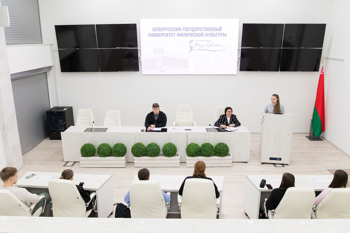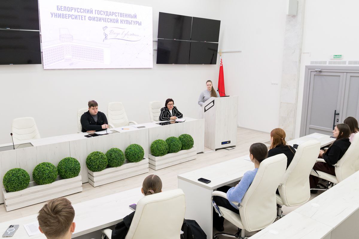 19 февраля 2026 г. на факультете менеджмента спорта, туризма и гостеприимства Института менеджмента спорта и туризма состоялась встреча секретаря ПО ОО «БРСМ» с правами РК УО «БГУФК» Смирновой Вероники Эдуардовны с секретарями БРСМ учебных групп факультета.