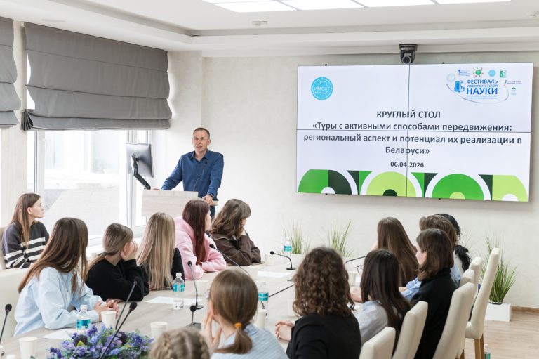 Второй круглый стол был организован кафедрой спортивного туризма и технологий в туристической индустрии на тему: «Туры с активными способами передвижения: региональный аспект и потенциал их реализации в Беларуси». Модераторами и участниками выступили профессорско-преподавательский состав кафедры, студенты 1–3-х курсов специализации «Спортивный и рекреационный туризм» и приглашенные эксперты туристической индустрии.