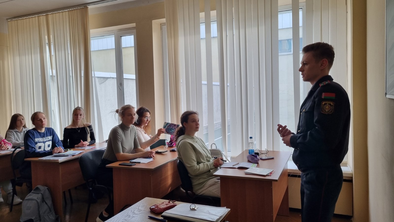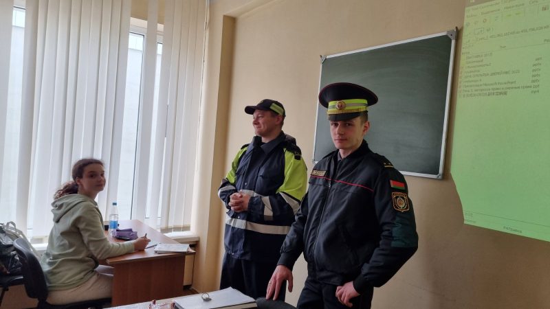 Цель мероприятия — формирование правовой грамотности и предотвращение административных правонарушений в области дорожного движения. Сотрудник ГАИ рассказал студентам об административной ответственности за нарушение Правил дорожного движения, управление транспортным средством водителями, не имеющими права управления, а также о последствиях несоблюдения дорожных законов, приводя примеры из своей практики.