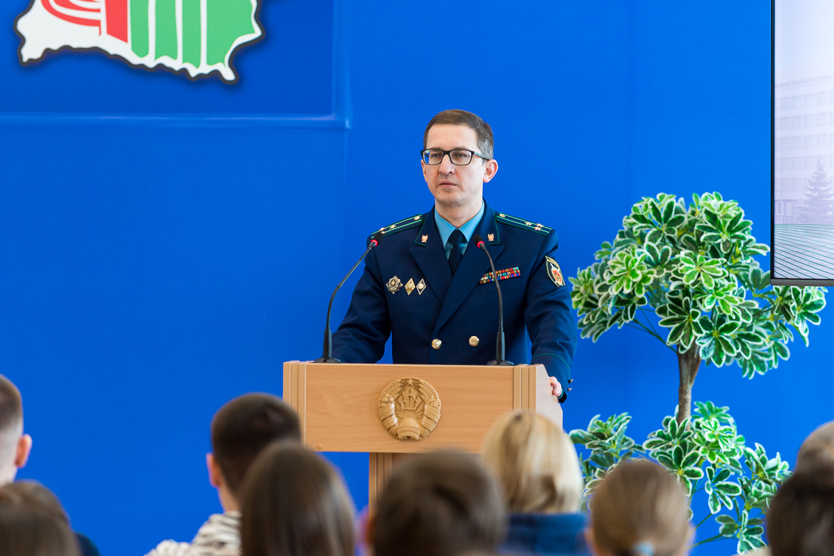 В своем выступлении Олег Васильевич остановился на основных вопросах правового воспитания студенческой молодежи, незаконном обороте и употреблении наркотиков, пособничество в мошенничестве и передаче банковских реквизитов для противоправных действий, информировал о группировке «ЧВК Рёдан», которая ведет организацию и подготовку действий, грубо нарушающих общественный порядок, посоветовал новости читать с официальных информационных ресурсов таких как: Пул Первого, Белта, Новости Минска и другие, рекомендовал посмотреть американский фильм «Реквием по мечте» (2000), в котором каждый из главных героев стремился к своей заветной мечте, но на их пути появляются всяческие препятствия. События фильма разворачиваются стремительно, герои погрязли в наркотиках. Мечты по-прежнему остаются недостижимыми, а жизни героев рушатся безвозвратно.