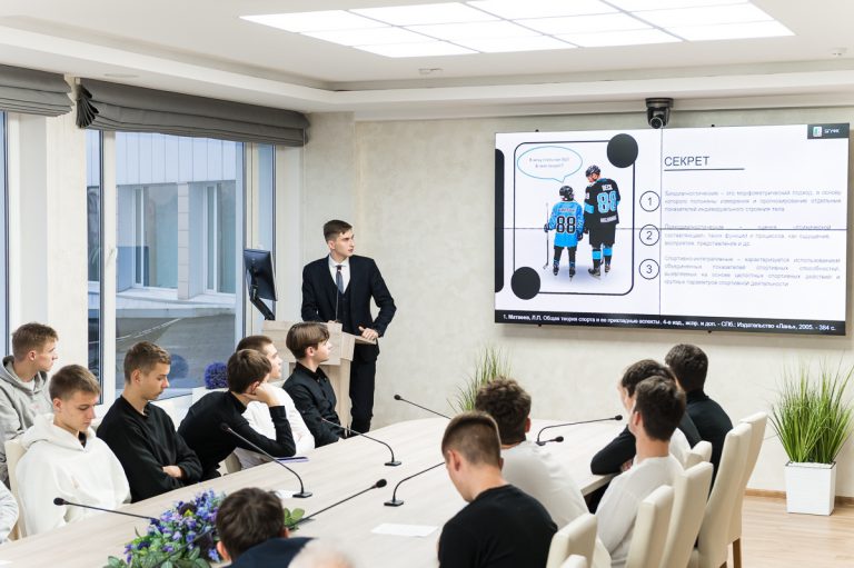 Курбацкий Андрей Петрович, студент (г. Минск, БГУФК, член студенческой научно-исследовательской лаборатории «Наука футбола и хоккея» кафедры футбола и хоккея) – «Интегрированный подход в спортивном отборе в хоккее с шайбой»