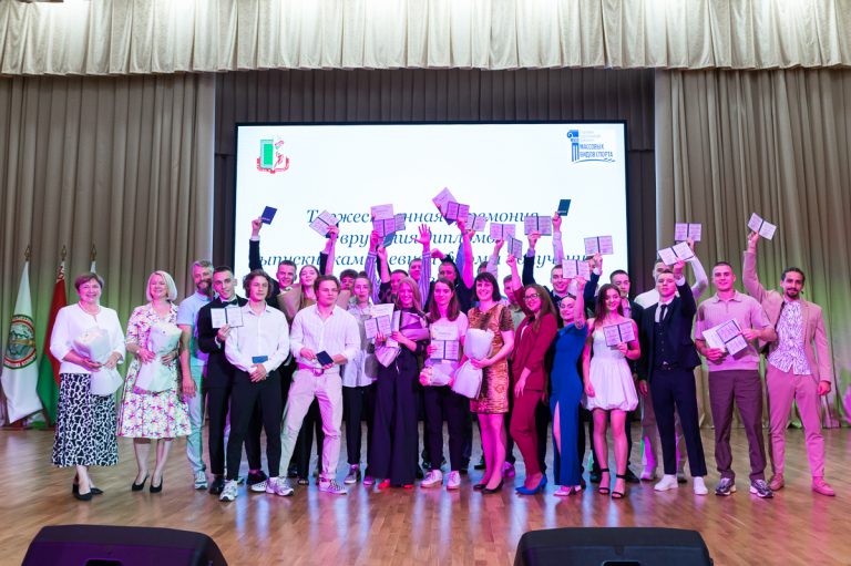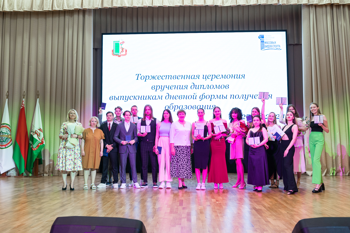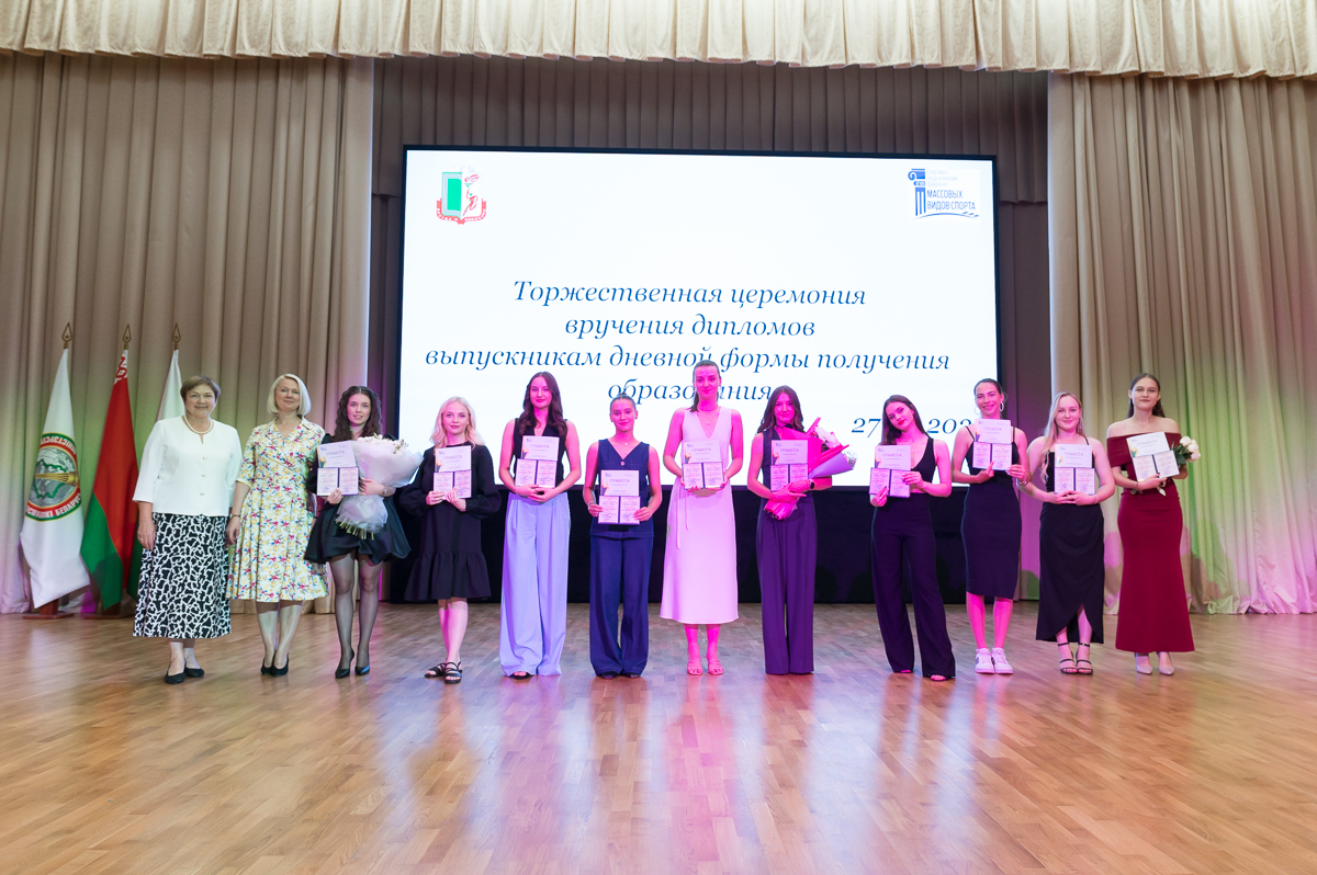 27 июня 2024 года в актовом зале Белорусского государственного университета физической культуры состоялась торжественная церемония вручения дипломов выпускникам 2024 года спортивно-педагогического факультета массовых видов спорта. Молодые специалисты получили заветный документ из рук проректора по научной работе Татьяны Анатольевны Морозевич-Шилюк и декана факультета Ирины Иосифовны Гуслистовой.