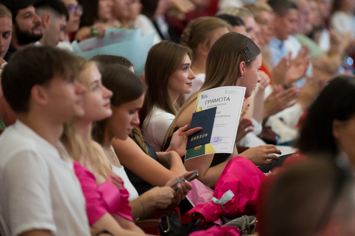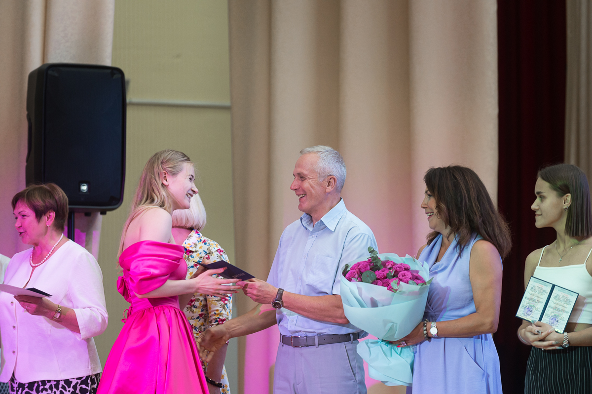 С поздравлениями обратилась к выпускникам Ирина Иосифовна Гуслистова. Более 60 выпускников за высокие достижения в спорте и активное участие в научной, спортивной и общественной жизни университета получили грамоты, а 11 выпускников – дипломы с отличием. Ирина Иосифовна пожелала выпускникам успехов, творческих побед на профессиональном пути, а также не останавливаться на достигнутом и использовать возможность обучения в магистратуре и аспирантуре.