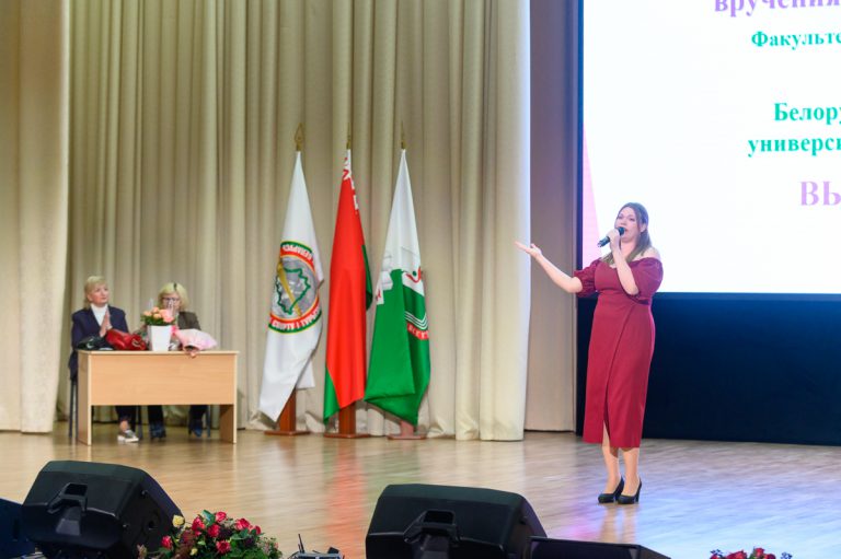 Вручение дипломов прошло в торжественной обстановке. Выпускник кафедры физической реабилитации Воликов Глеб  исполнил песню «К табе, Беларусь».