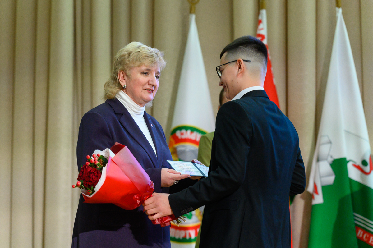 Вручение дипломов прошло в торжественной обстановке. Выпускник кафедры физической реабилитации Воликов Глеб  исполнил песню «К табе, Беларусь».