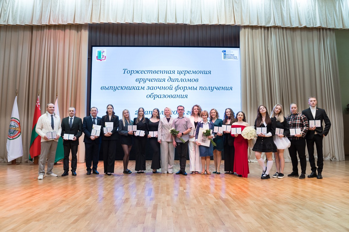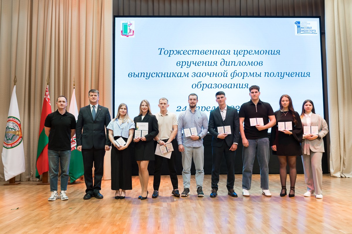 В БГУФК сегодня, 24 апреля, состоялась торжественная церемония вручения дипломов выпускникам заочной формы получения образования спортивно-педагогического факультета массовых видов спорта.