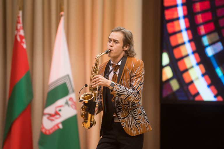 Перед выпускниками выступили с праздничными номерами студенты спортивно-педагогического факультета массовых видов спорта дневной формы получения образования Руцкая Полина, Анастасии Боровик, Михаил Хмель, Оксана Тимофеева, Матвей Плугин и Хацкевич Дарья.