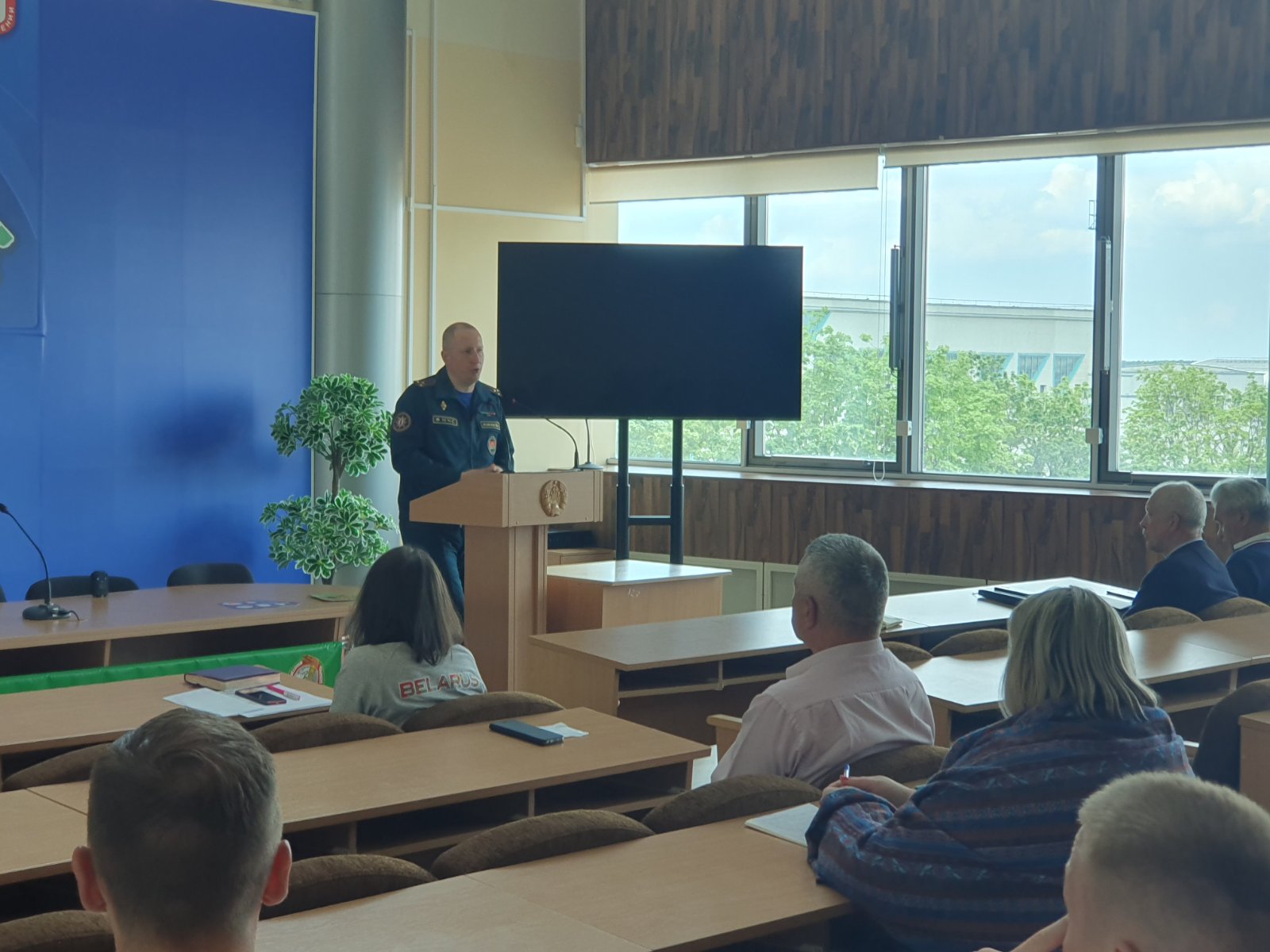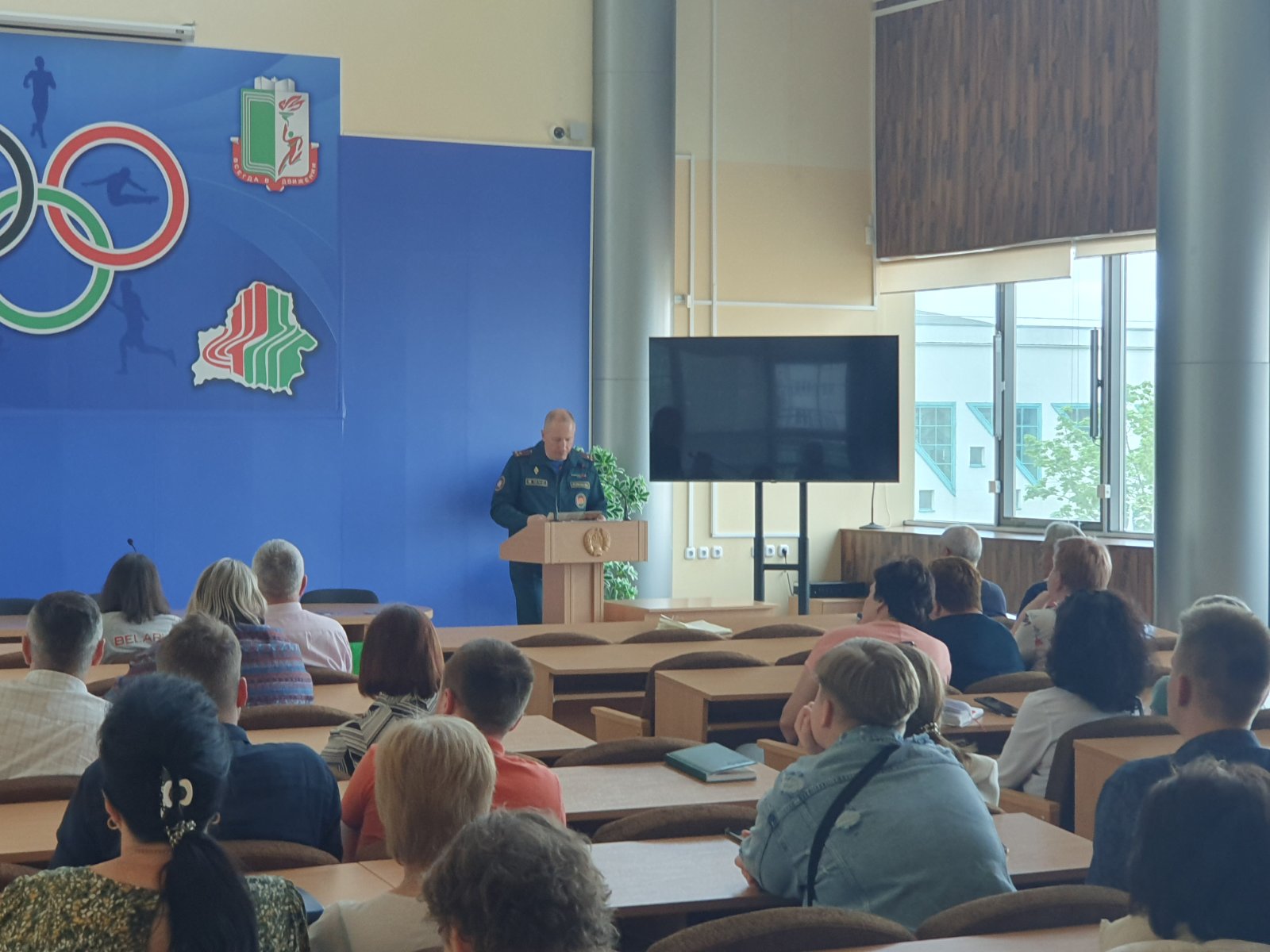 24 мая состоялось встреча начальника Центрального РОЧС г. Минска Максима Николаевича Яковлева с работниками университета. Тема выступления «Необходимость соблюдения мер пожарной безопасности, соблюдения правил поведения на воде, а также организация безопасности жизнедеятельности при проведении II Игр стран СНГ».