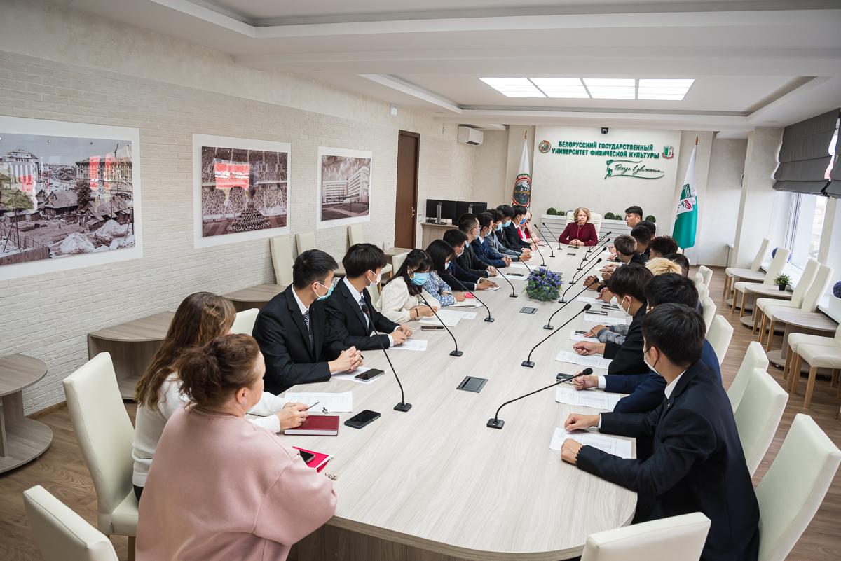 26 сентября состоялась встреча руководства университета со студентами Хэнаньского педагогического университета, которые прибыли из Китая для обучения на подготовительном отделении с последующим поступлением в магистратуру. Проректор по учебной работе Елена Васильевна Фильгина поприветствовала китайских студентов и произнесла для них напутственные слова. Лучшие студенты, которые успешно защитят магистерские работы, будут рекомендованы для поступления в аспирантуру БГУФК.