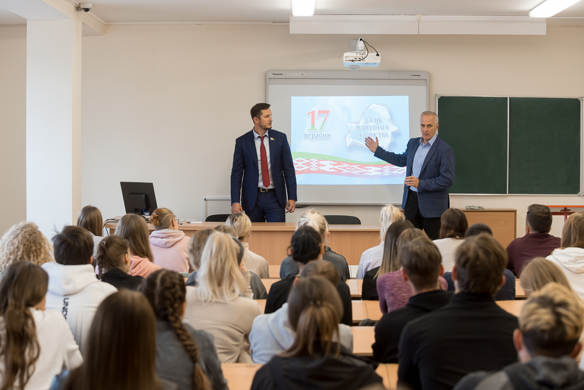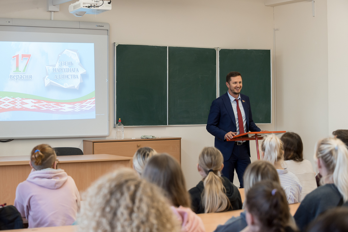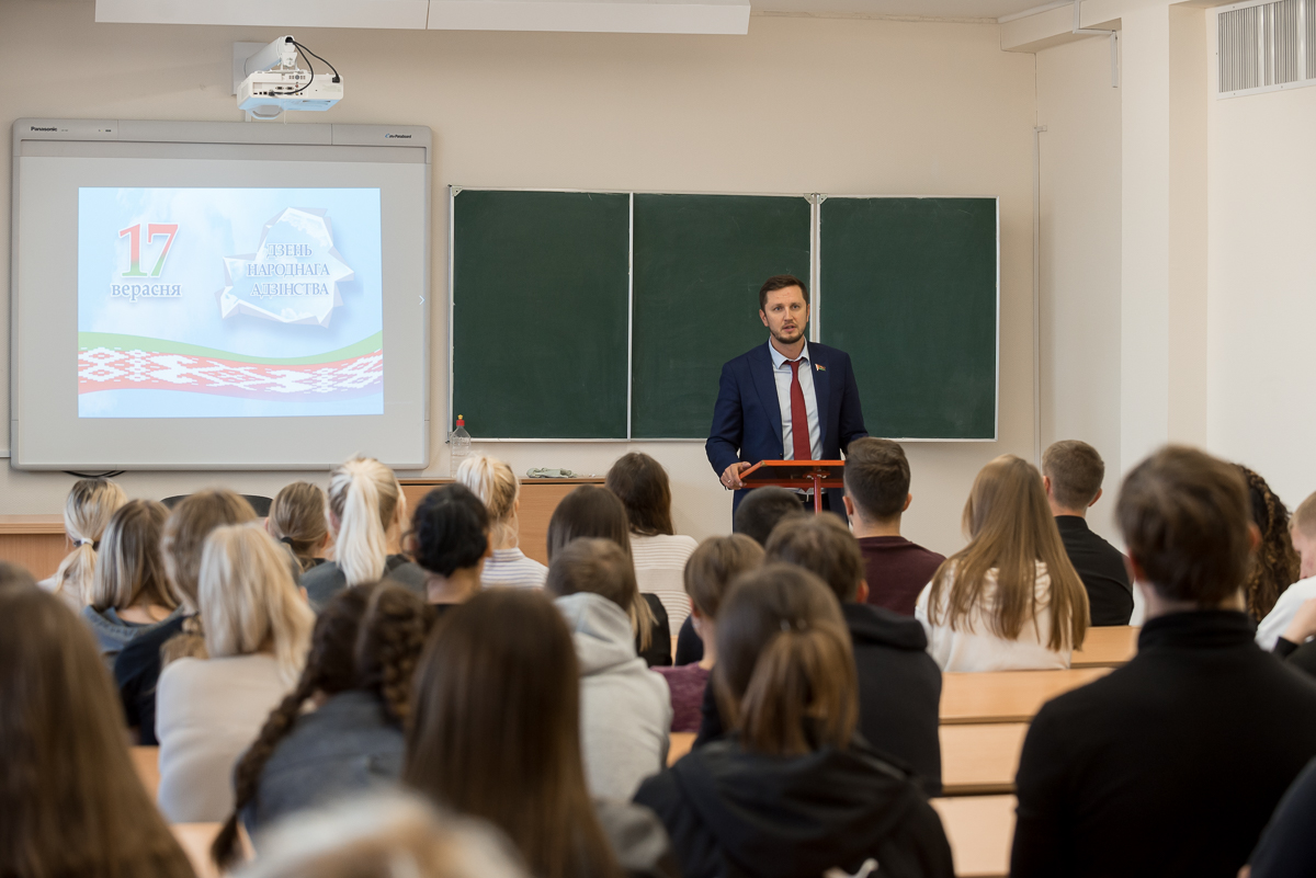 В преддверии празднования Дня народного единства, в рамках кураторского часа, состоялась встреча студентов кафедры легкой атлетики с депутатом Палаты представителей Национального собрания седьмого созыва Завалеем Игорем Владимировичем.