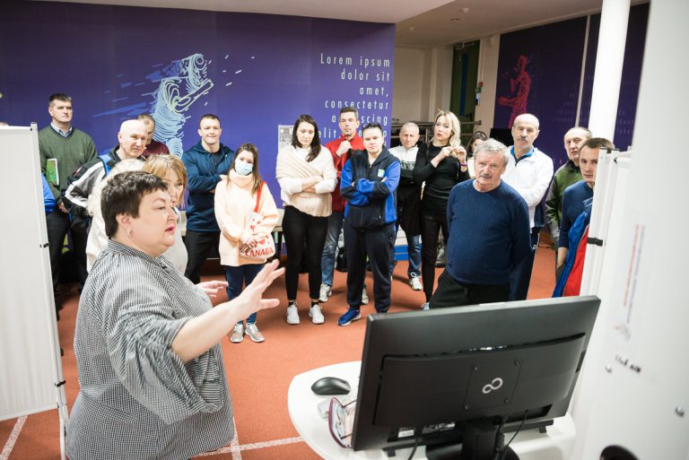 Специалисты площадки тестирования научно-образовательного кластера заведующий отраслевой лабораторией спортивной биомеханики Республиканского инновационного унитарного предприятия «Научно-технологический парк БНТУ «Политехник», доцент кафедры теории и методики физического воспитания и спорта БГУФК, кандидат биологических наук, доцент Парамонова Наталья Андреевна, старший научный сотрудник этой же лаборатории, старший преподаватель кафедры теории и методики физического воспитания и спорта БГУФК Борщ Майя Казимировна и ведущий специалист информационно-аналитического отдела центра координации научно-методической и инновационной деятельности БГУФК Шешко Валентина Владимировна продемонстрировали для участников мастер-класса работу современного диагностического и измерительного оборудования.