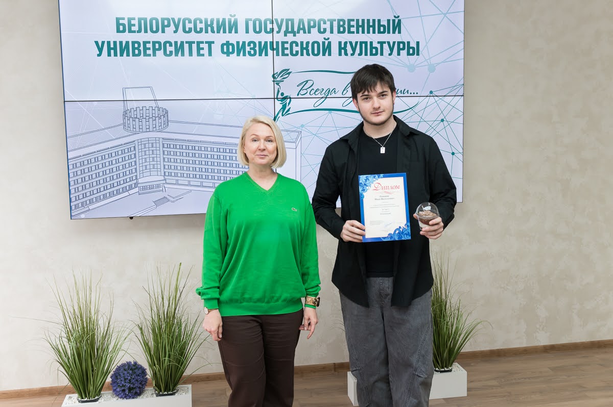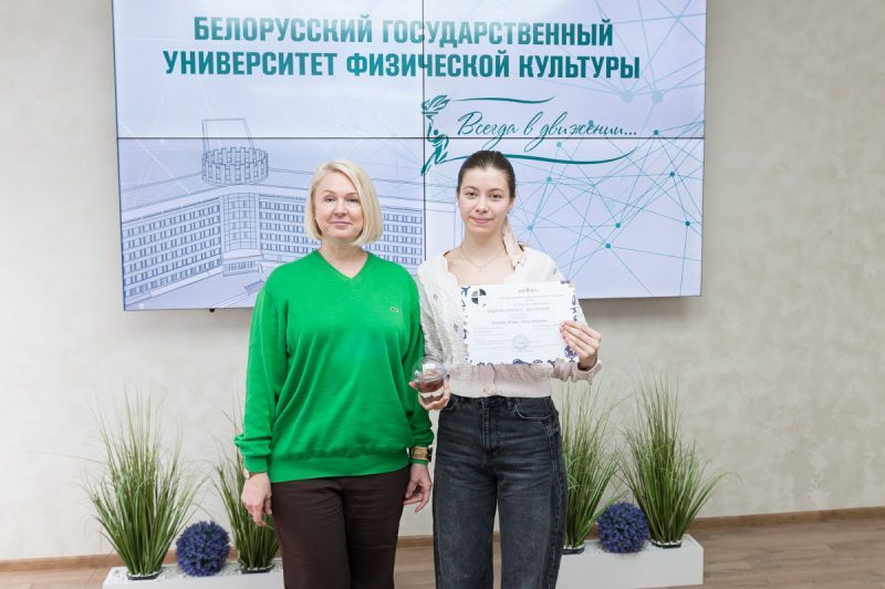 - в номинации №158 «Развитие спорта в мире» — аспирант Яхновец Алина Сергеевна с проектом «Кинематическая характеристика бегового шага детей 7–10 лет как фактор спортивного отбора». Научный руководитель — профессор кафедры легкой атлетики Позюбанов Эдуард Петрович;