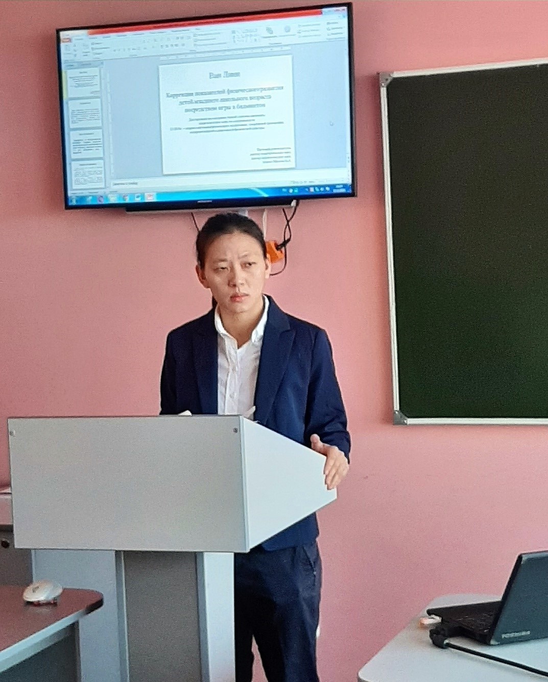 Доклад аспирантки Ван Лиин содержал основные положения диссертационной работы по проблеме физического воспитания школьников младших классов Китайской Народной Республики.