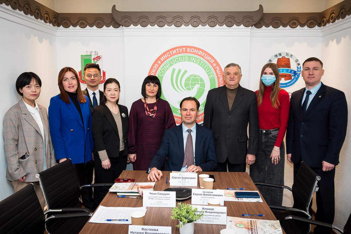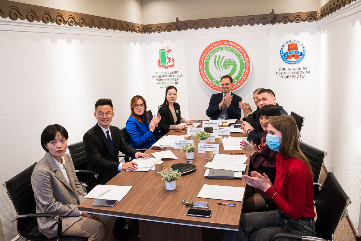 Члены совета Института Конфуция с белорусской и китайской стороны под руководством ректоров обоих университетов заслушали директоров Института с китайской и белорусской сторон Чжан Сяошуан и Наталию Владимировну Костееву с докладами по итогам проведенной работы в 2022 году, а также об основных направлениях развития Института в 2023 году.