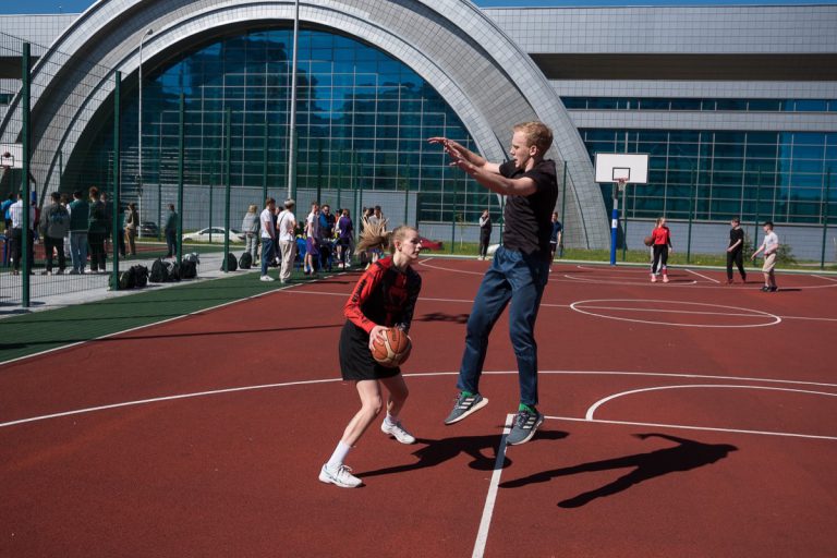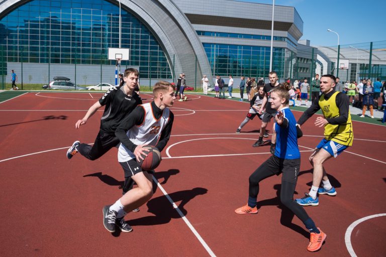 На плоскостных спортивных сооружениях университета 10 мая состоялось первенство университета по баскетболу 3х3 среди студентов непрофильных специальностей.