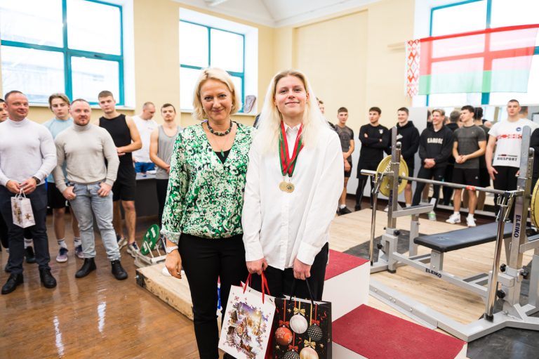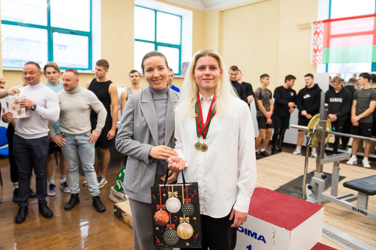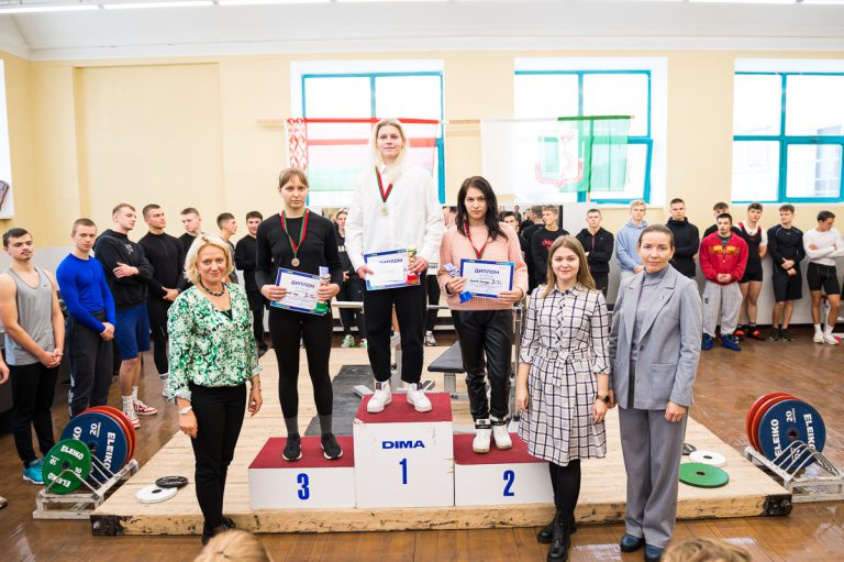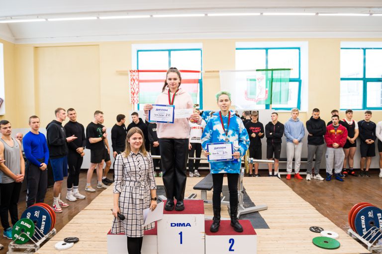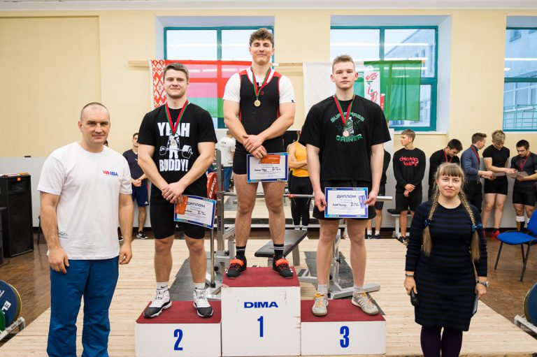 Также индивидуальными призами была награждена Усс Анастасия, студентка 020 группы за результаты — 1 место в весовой категории 63 кг с результатом 55 кг и 1 место в абсолютной весовой категории с результатом 46,74 очков IPF.