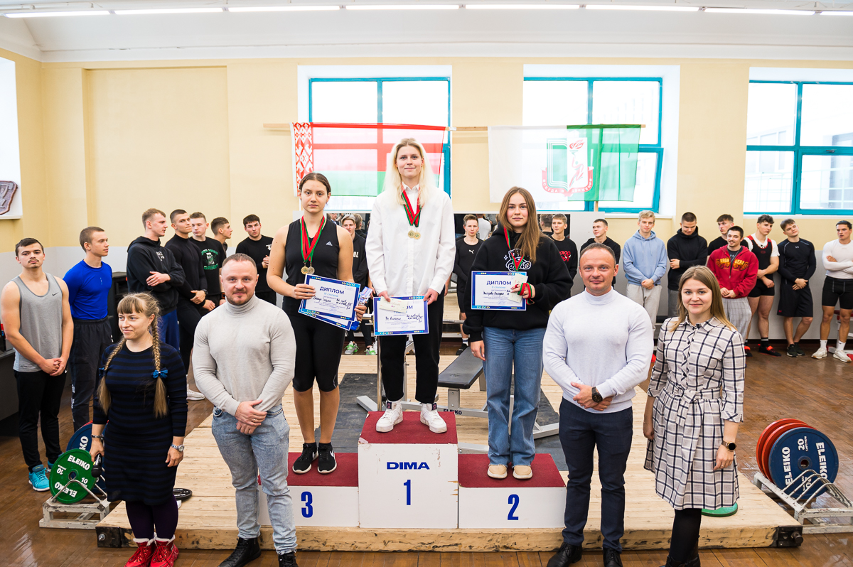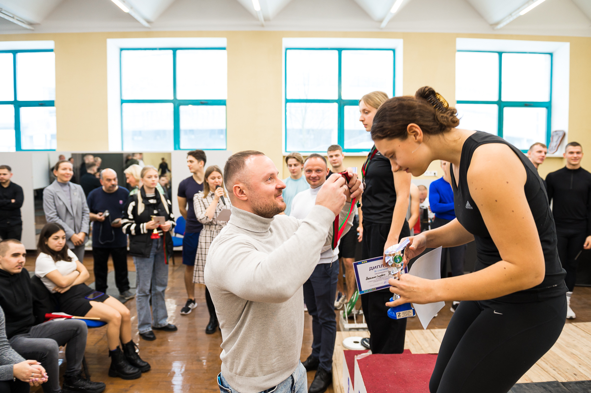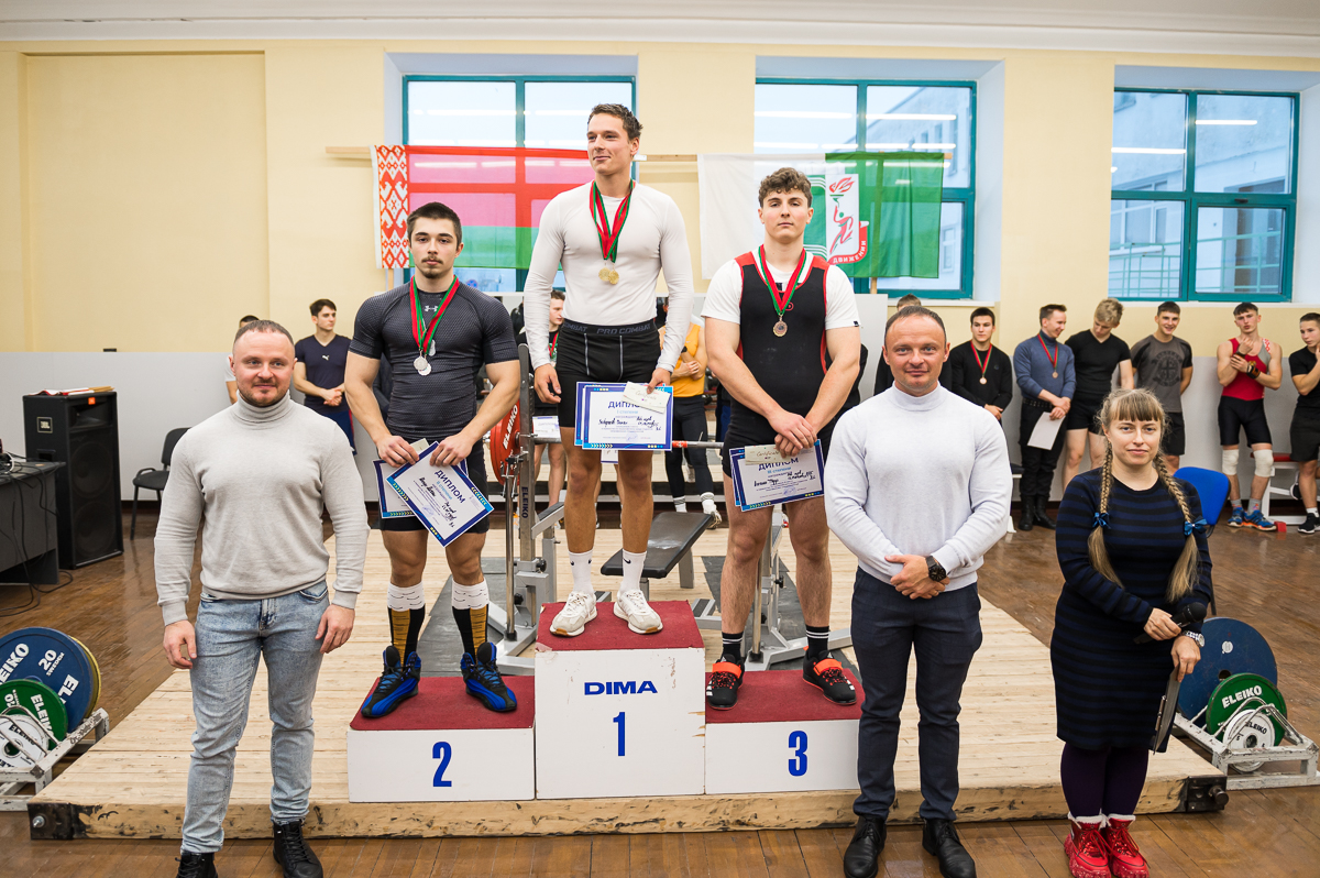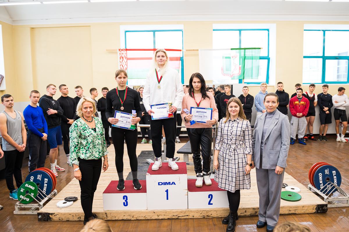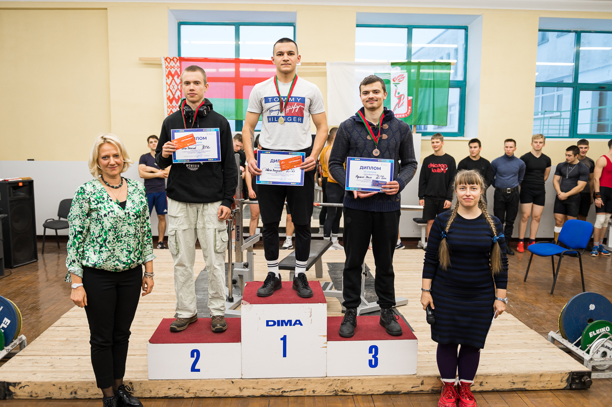 Также индивидуальными призами была награждена Усс Анастасия, студентка 020 группы за результаты — 1 место в весовой категории 63 кг с результатом 55 кг и 1 место в абсолютной весовой категории с результатом 46,74 очков IPF.